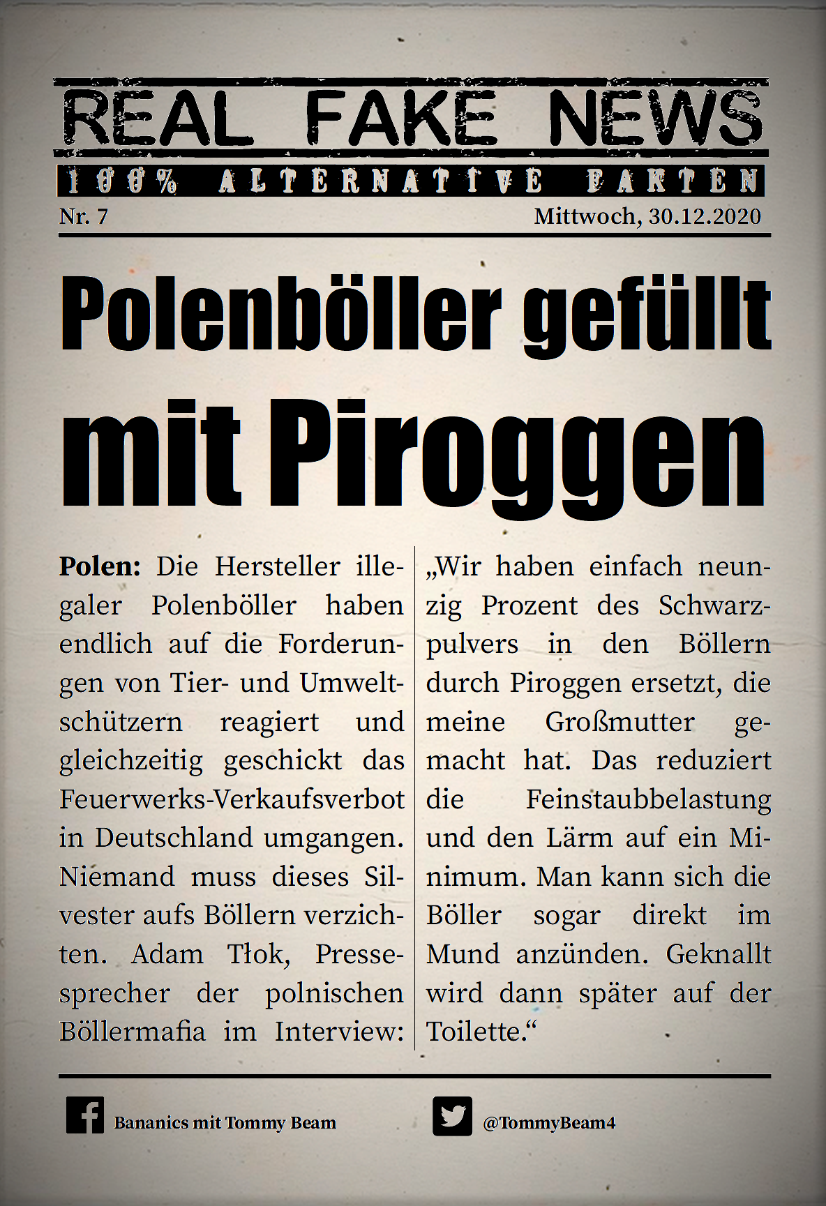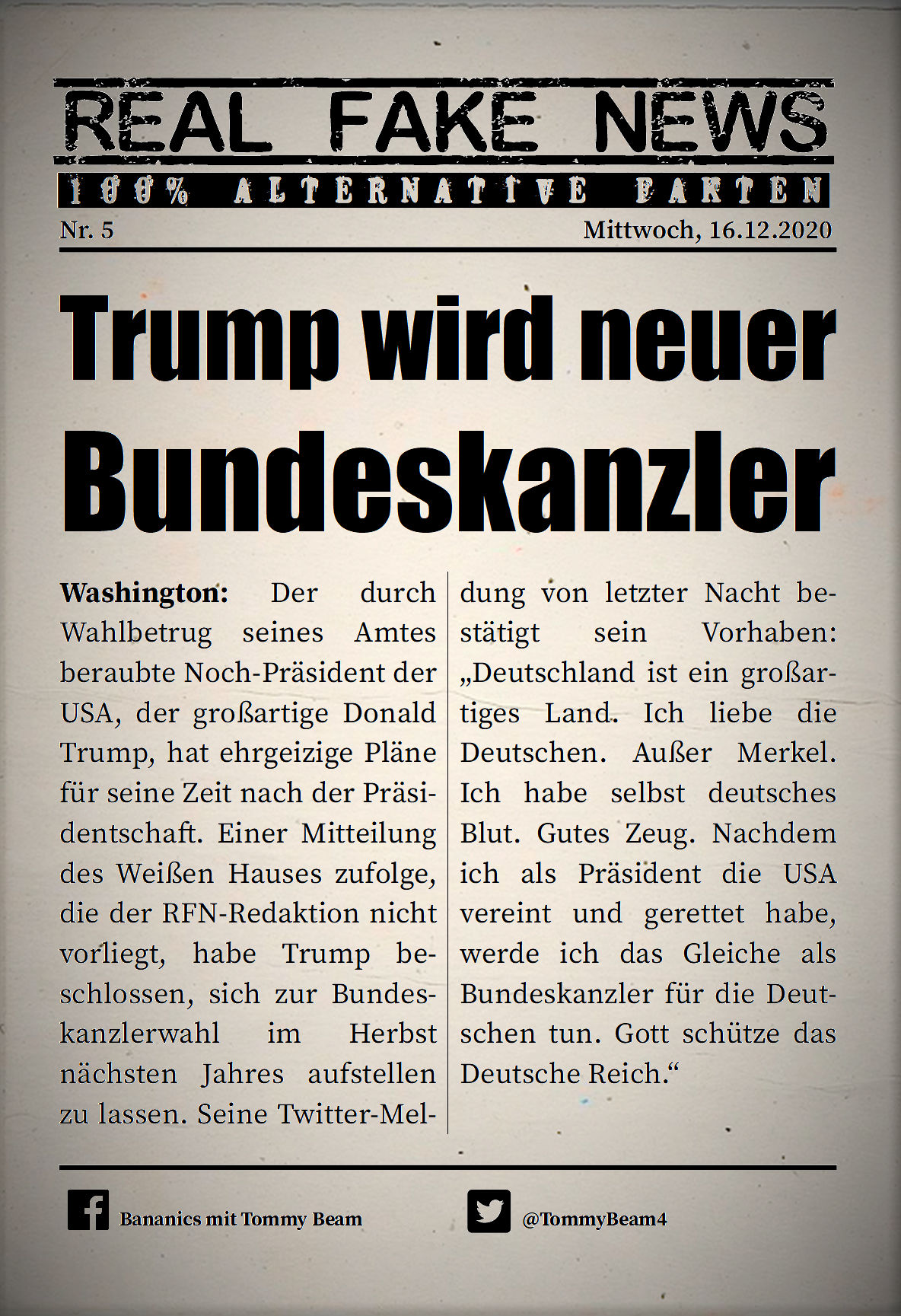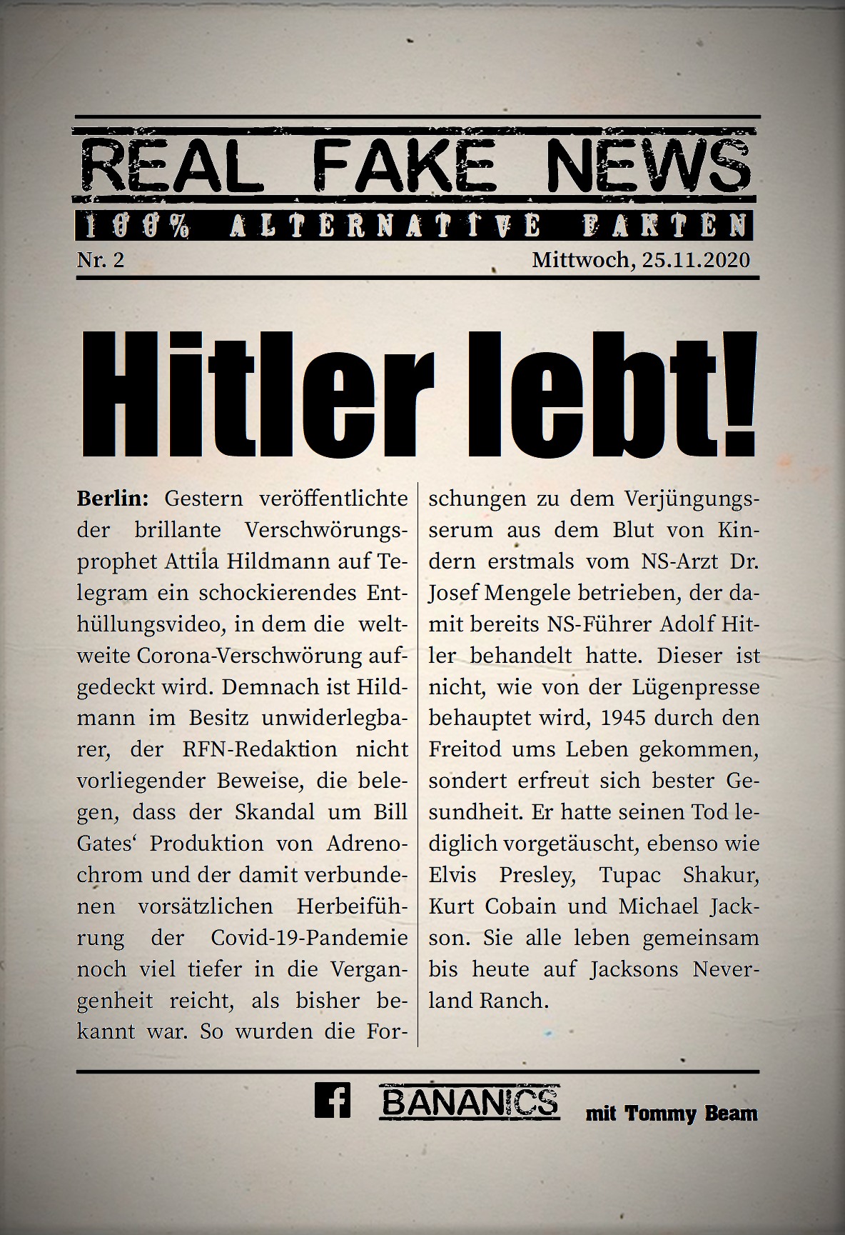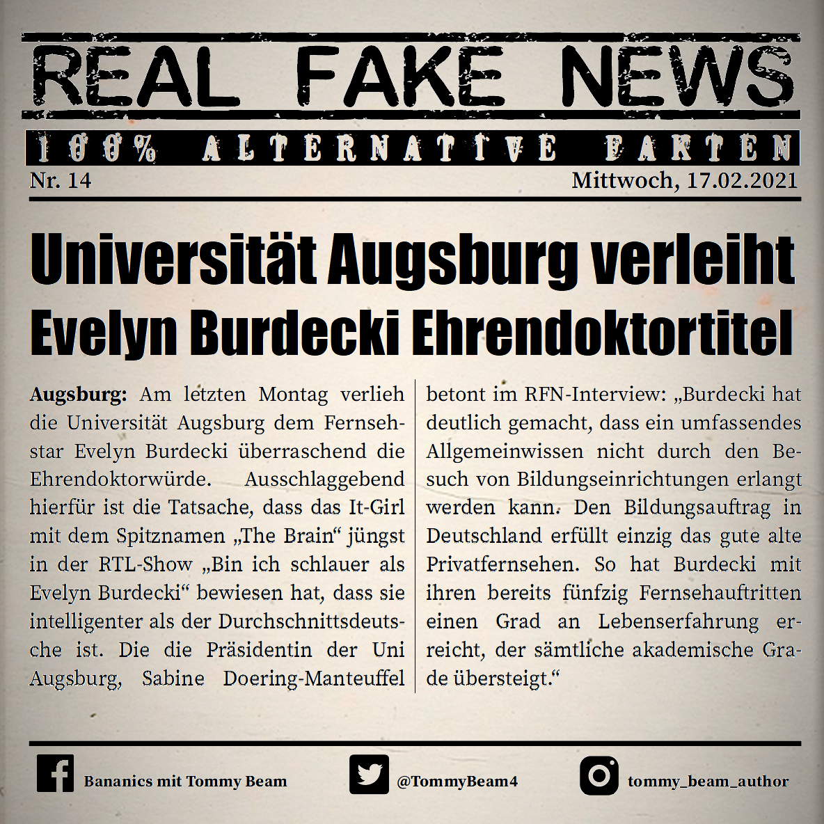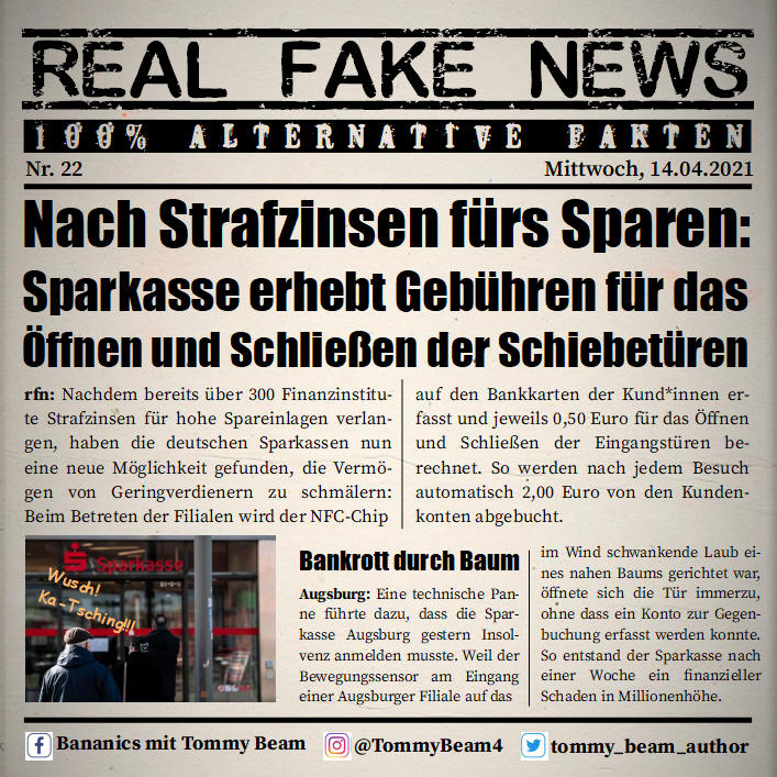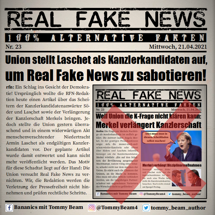 Bei der Rubrik ,,Real Fake News“ handelt es sich um Satire. Die geschilderten Behauptungen müssen nicht der Wahrheit entsprechen und spiegeln nicht die Meinung des Autoren wieder.
