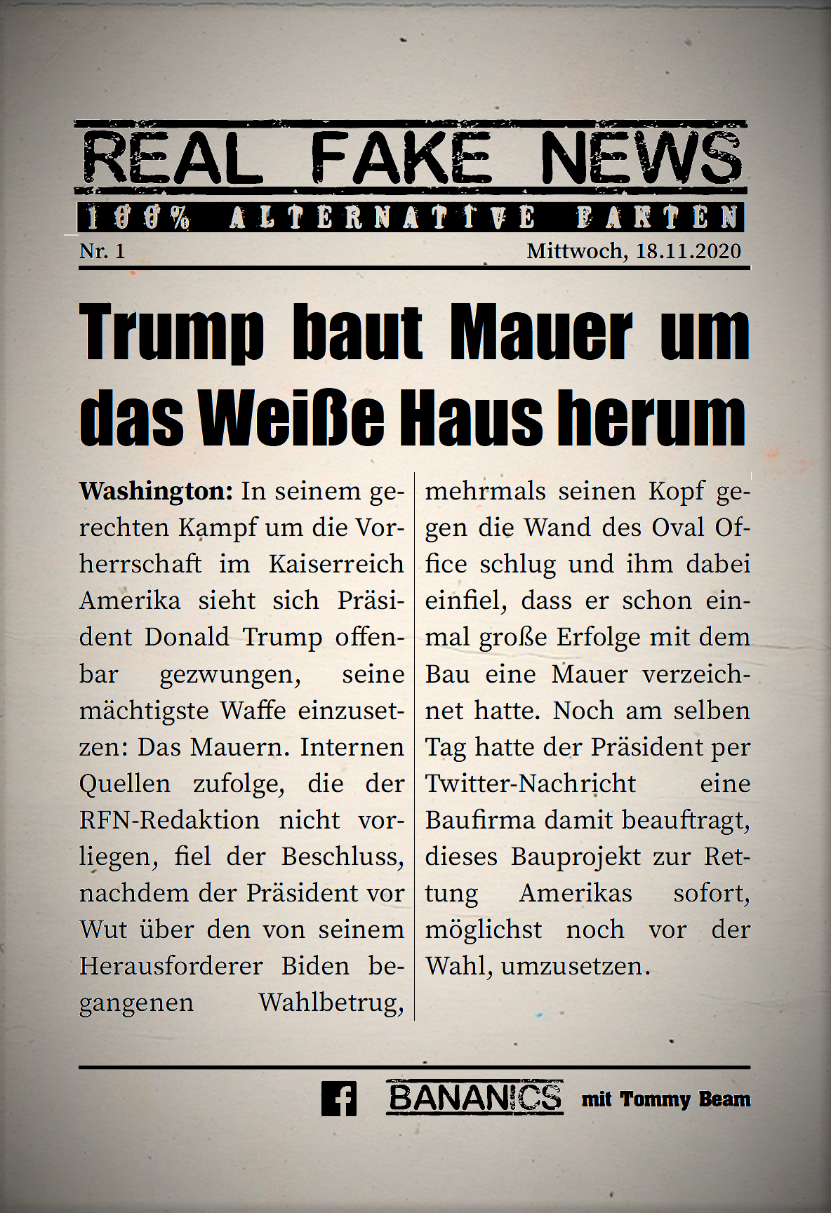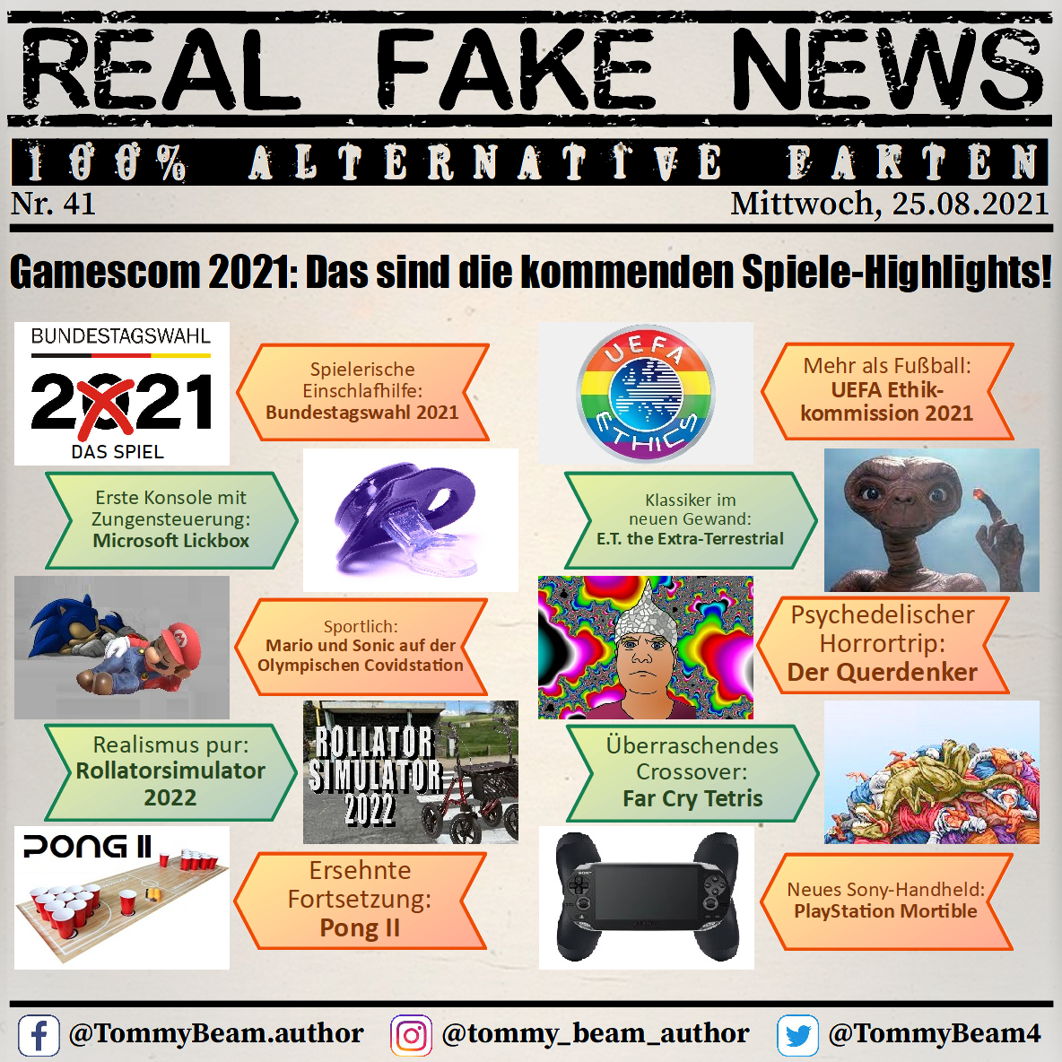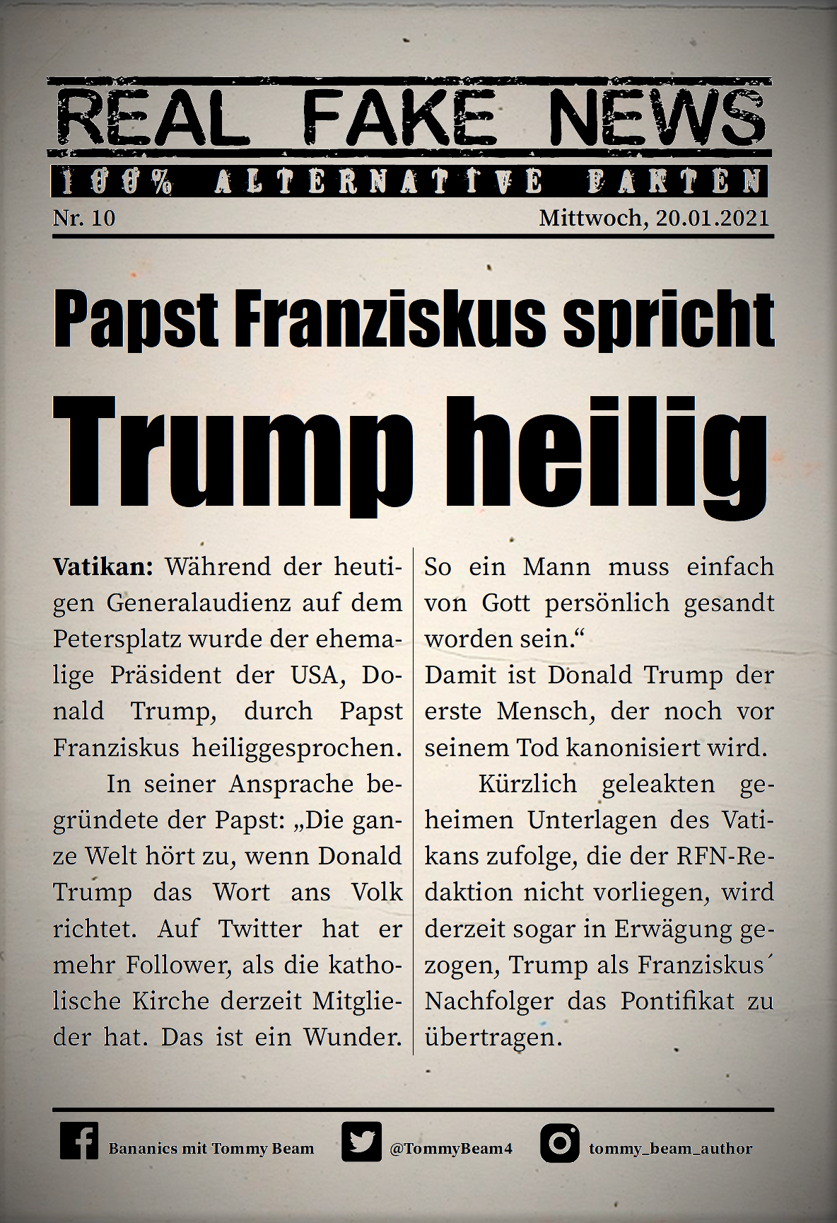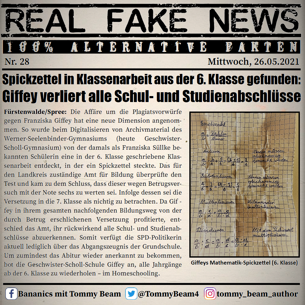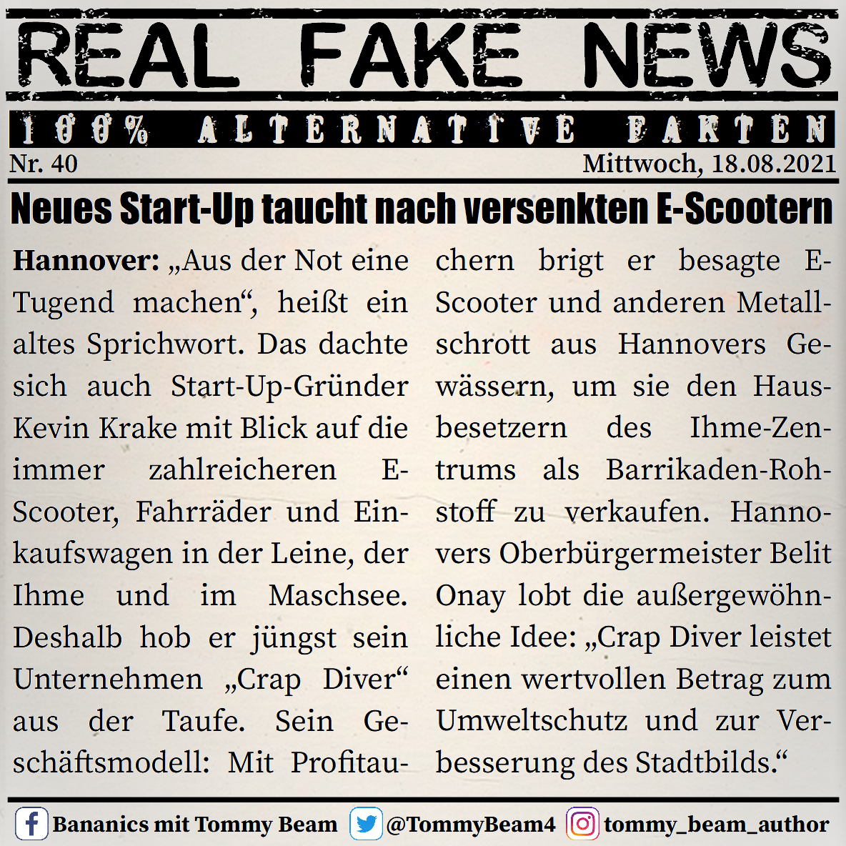 Bei der Rubrik ,,Real Fake News“ handelt es sich um Satire. Die geschilderten Behauptungen müssen nicht der Wahrheit entsprechen und spiegeln nicht die Meinung des Autoren wieder.
