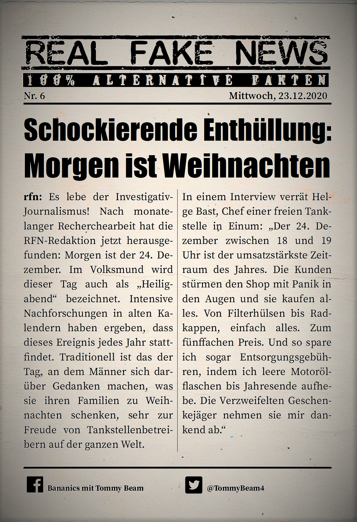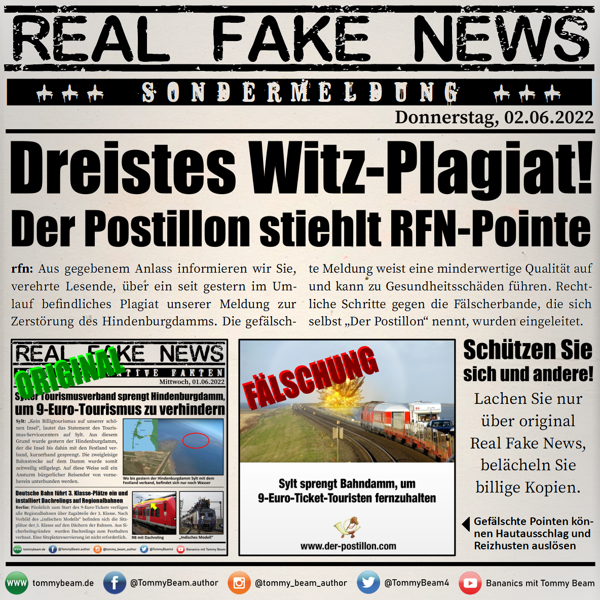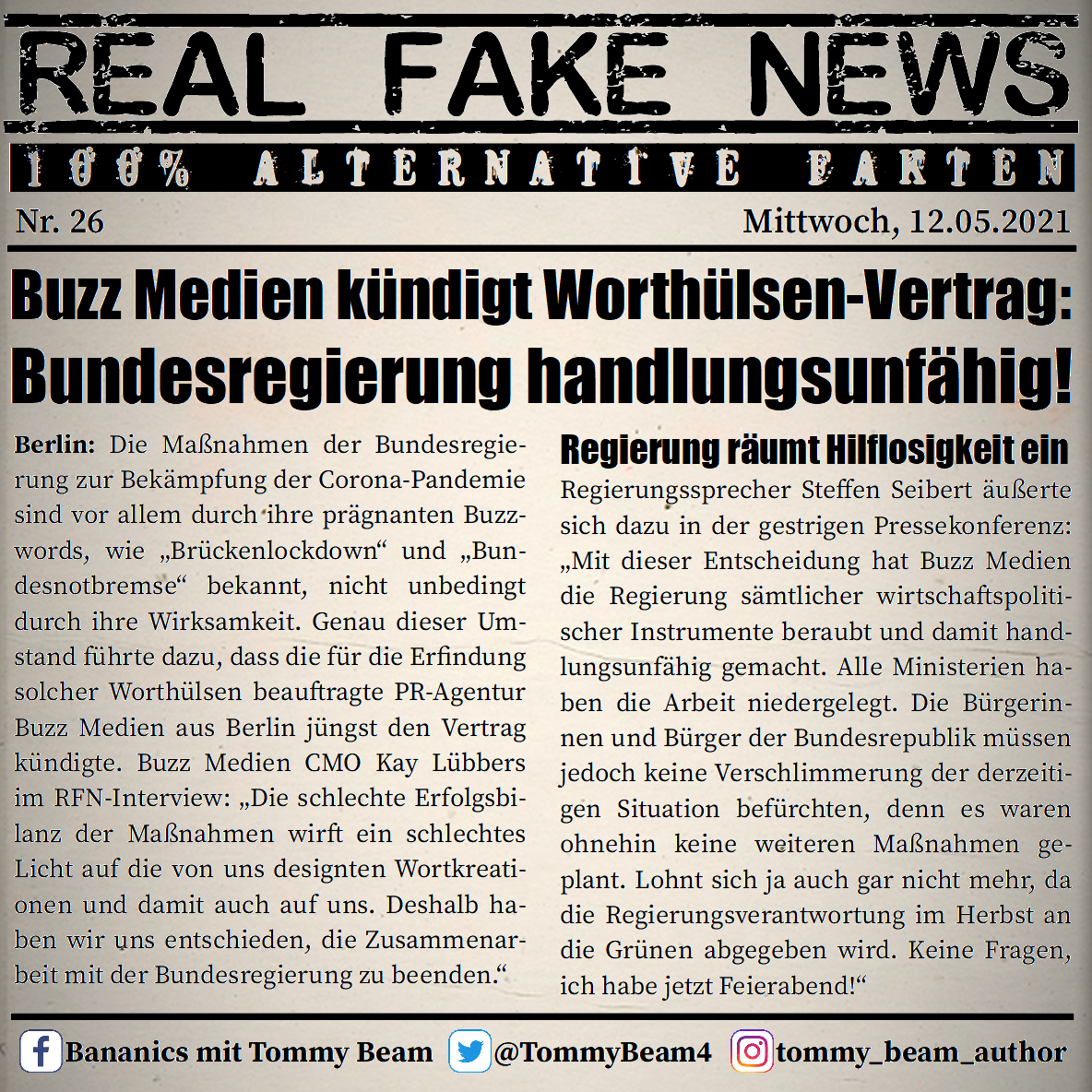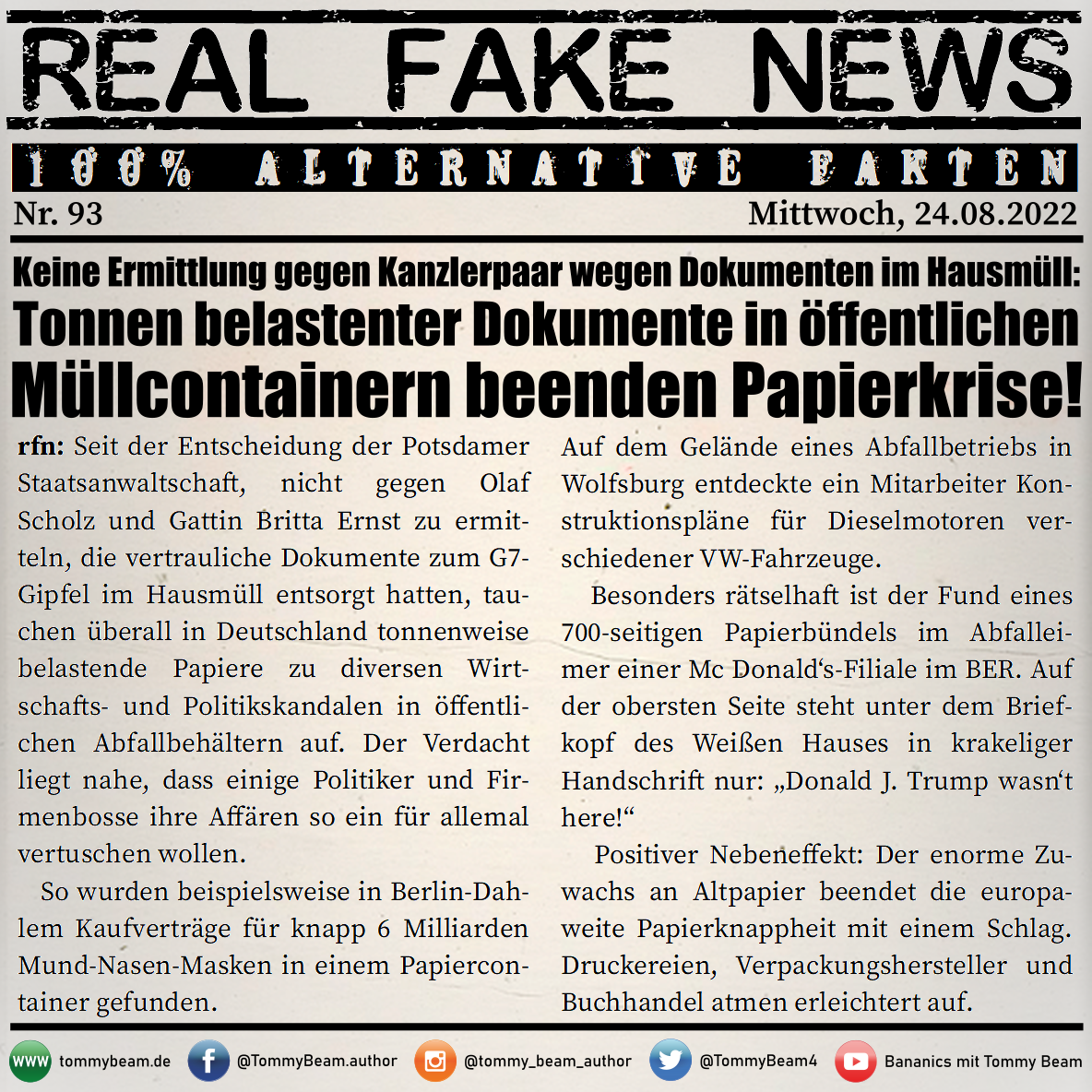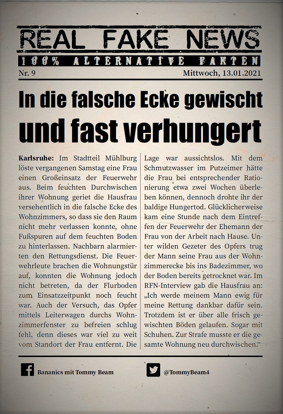 Bei der Rubrik ,,Real Fake News“ handelt es sich um Satire. Die geschilderten Behauptungen müssen nicht der Wahrheit entsprechen und spiegeln nicht die Meinung des Autoren wieder.