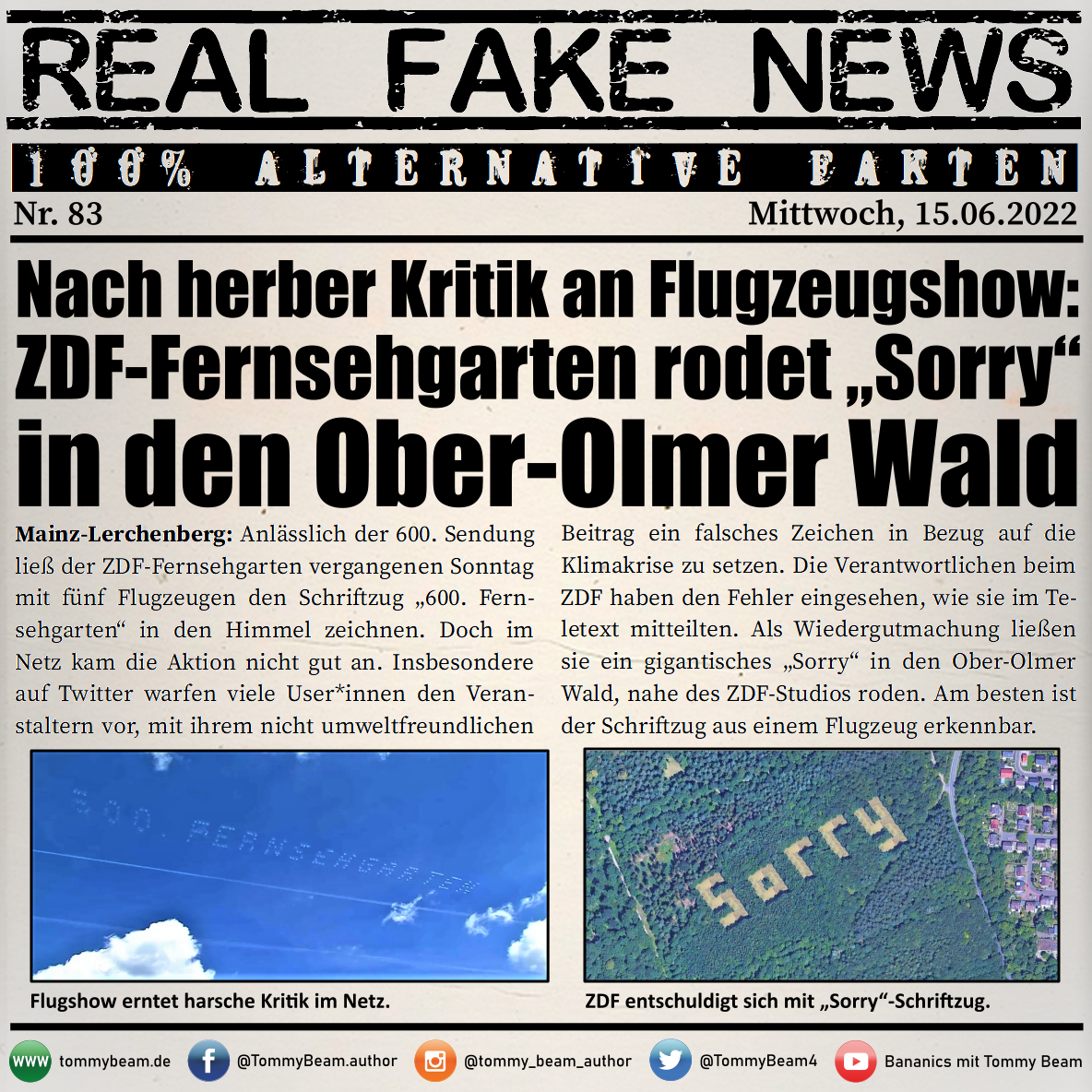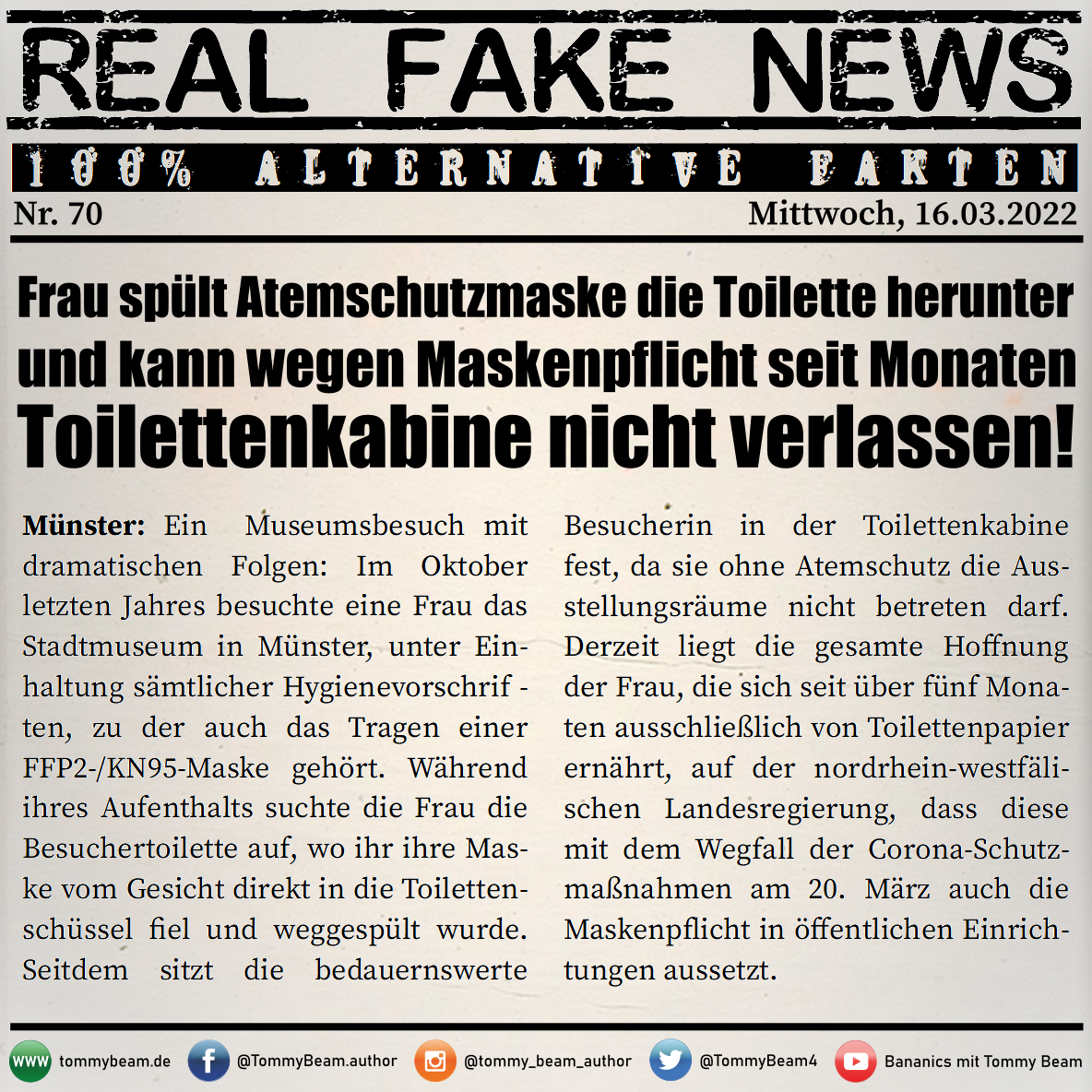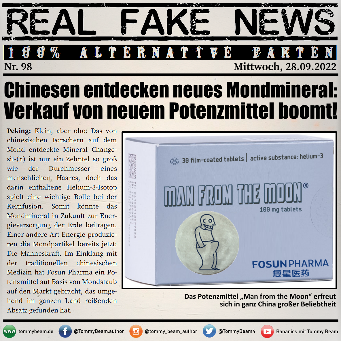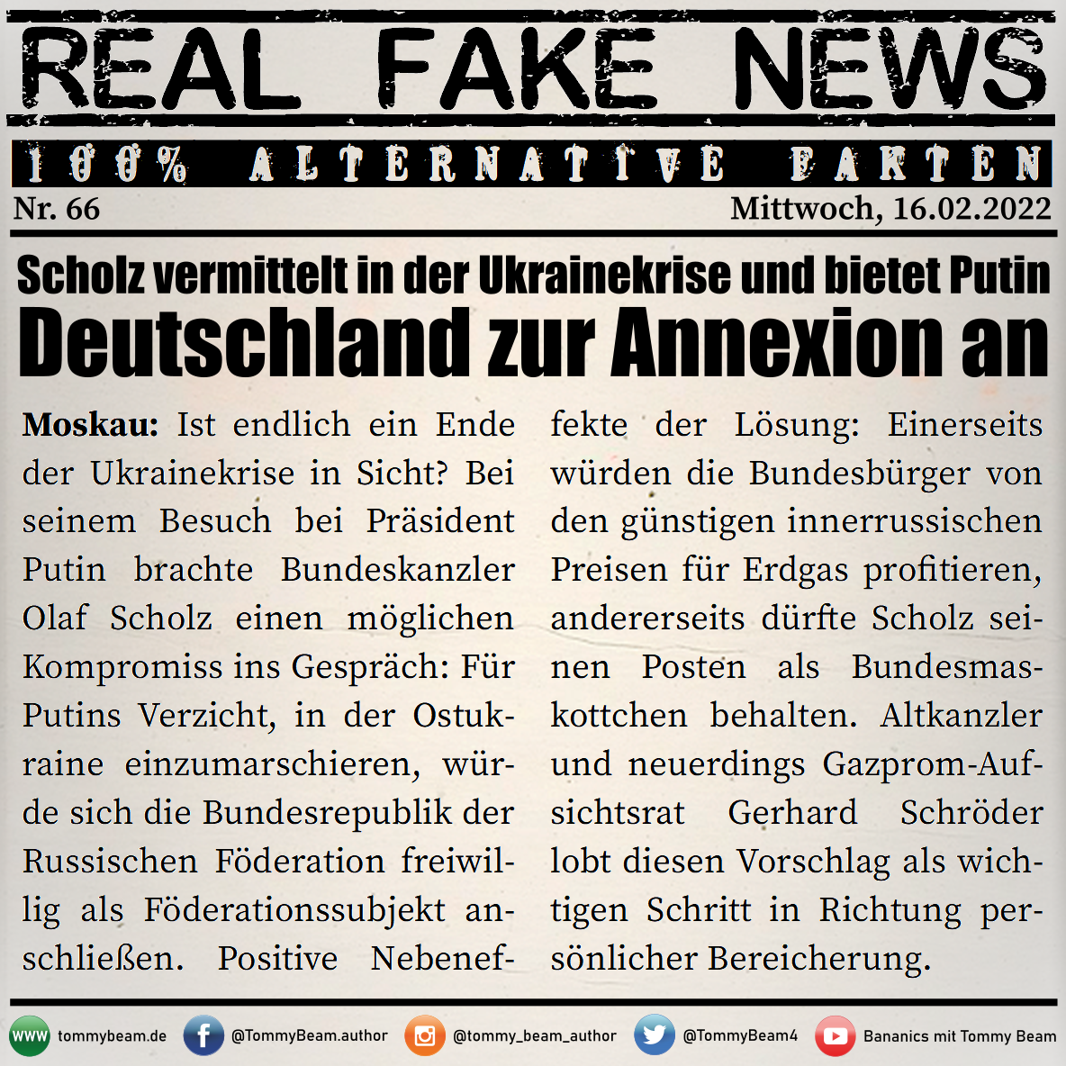 Bei der Rubrik ,,Real Fake News“ handelt es sich um Satire. Die geschilderten Behauptungen müssen nicht der Wahrheit entsprechen und spiegeln nicht die Meinung des Autoren wieder.