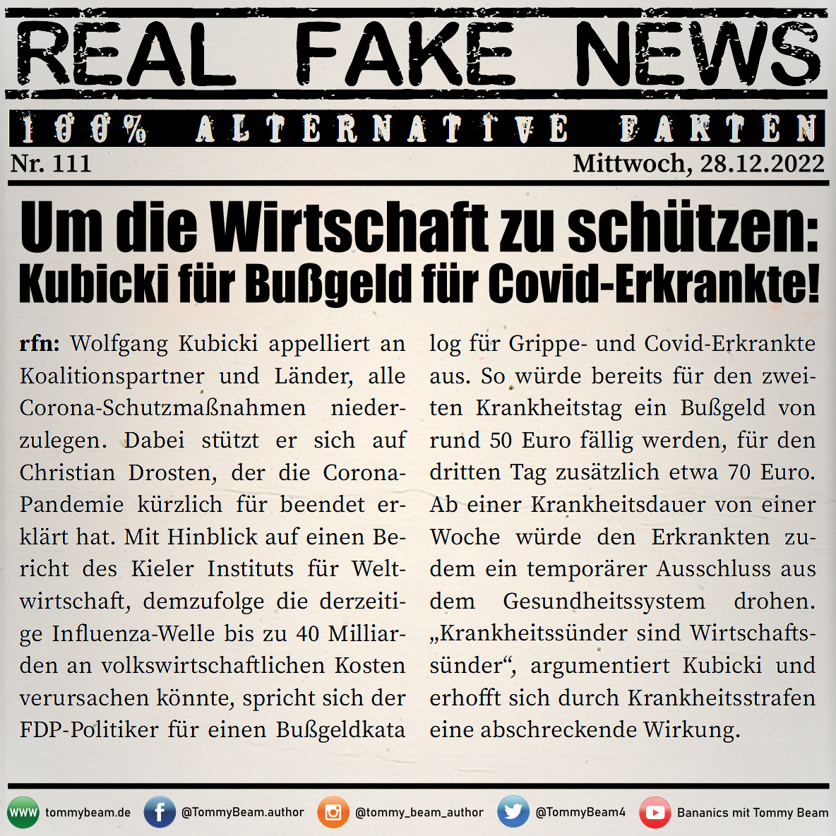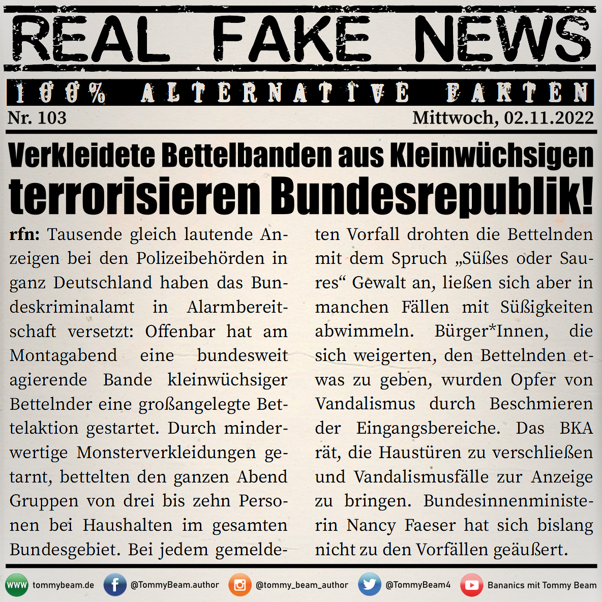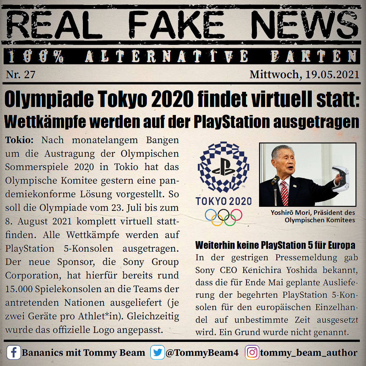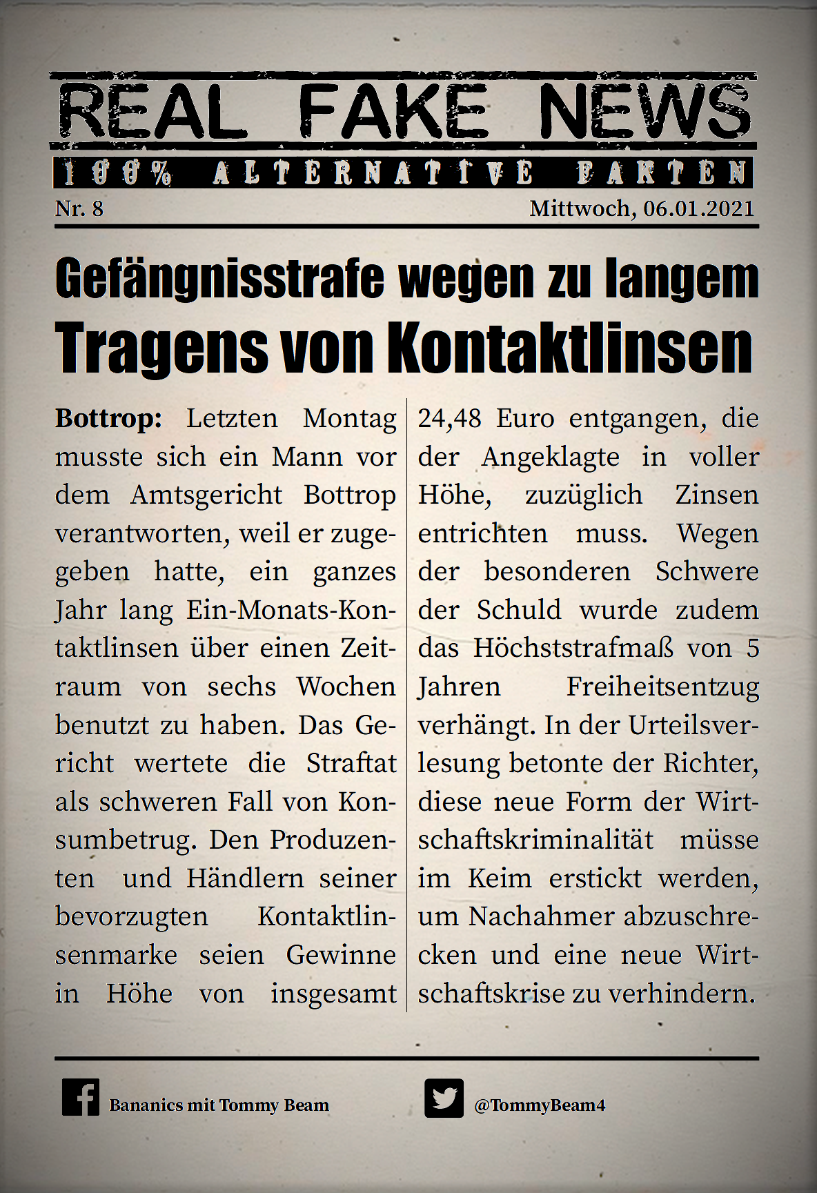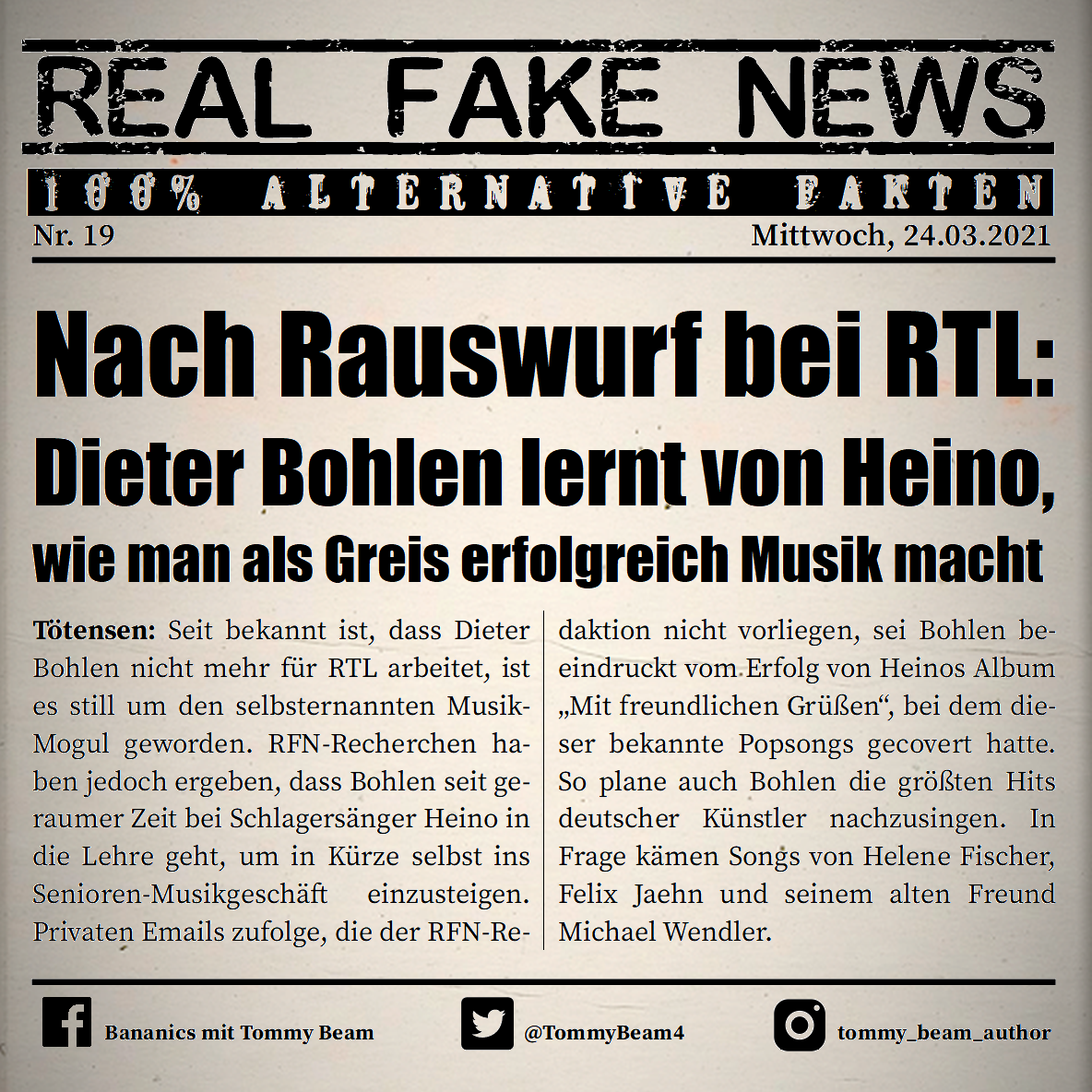 Bei der Rubrik ,,Real Fake News“ handelt es sich um Satire. Die geschilderten Behauptungen müssen nicht der Wahrheit entsprechen und spiegeln nicht die Meinung des Autoren wieder.