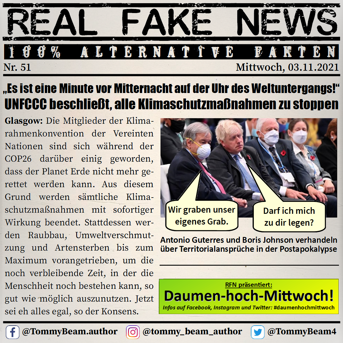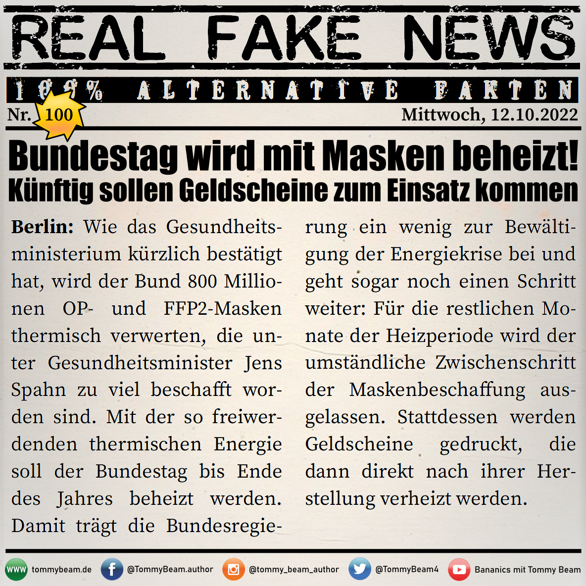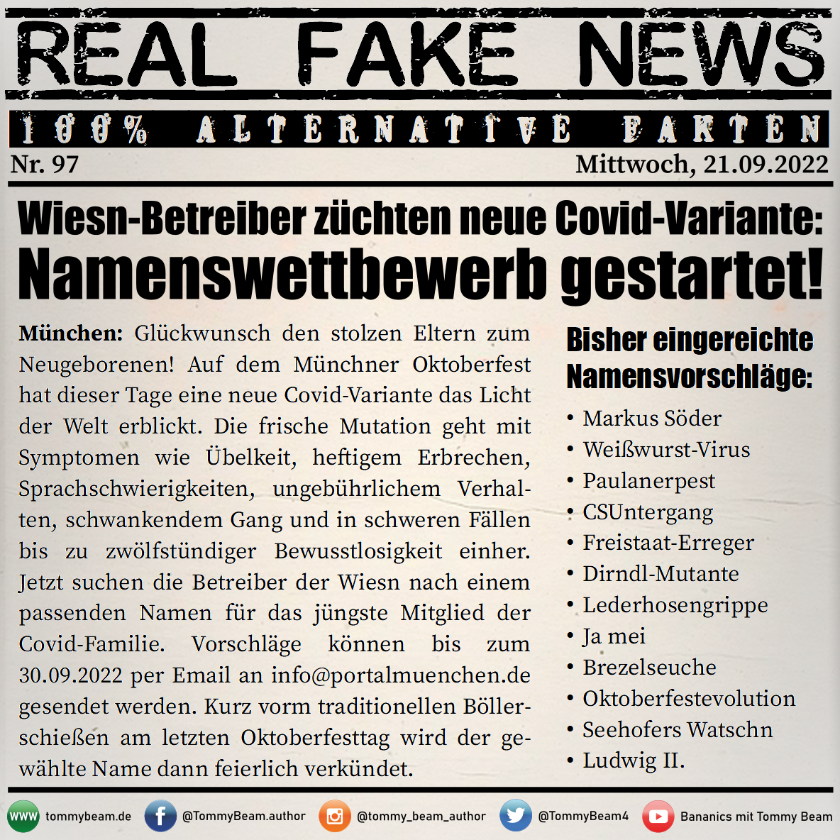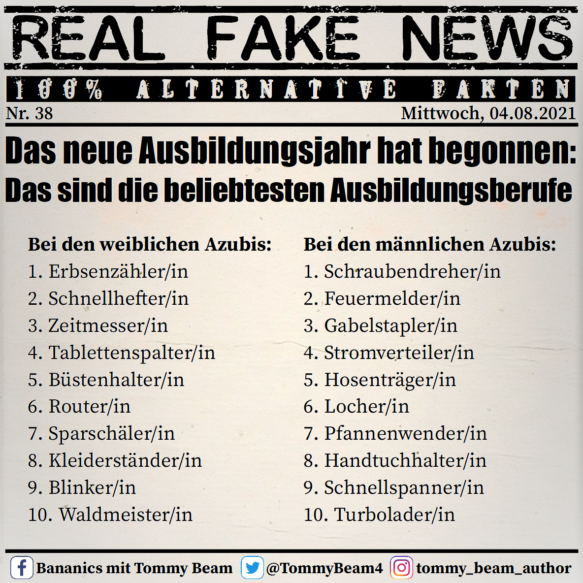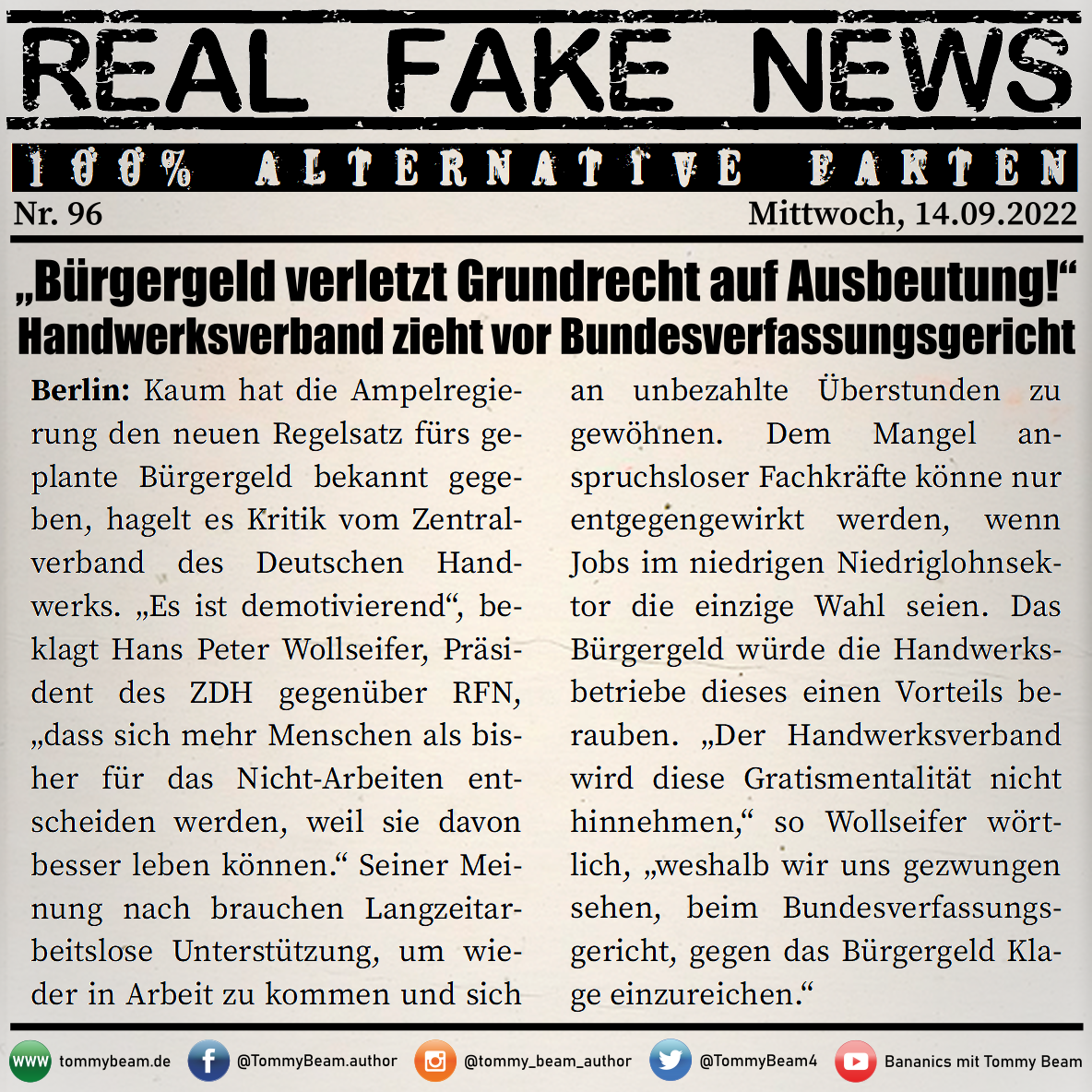 Bei der Rubrik ,,Real Fake News“ handelt es sich um Satire. Die geschilderten Behauptungen müssen nicht der Wahrheit entsprechen und spiegeln nicht die Meinung des Autoren wieder.