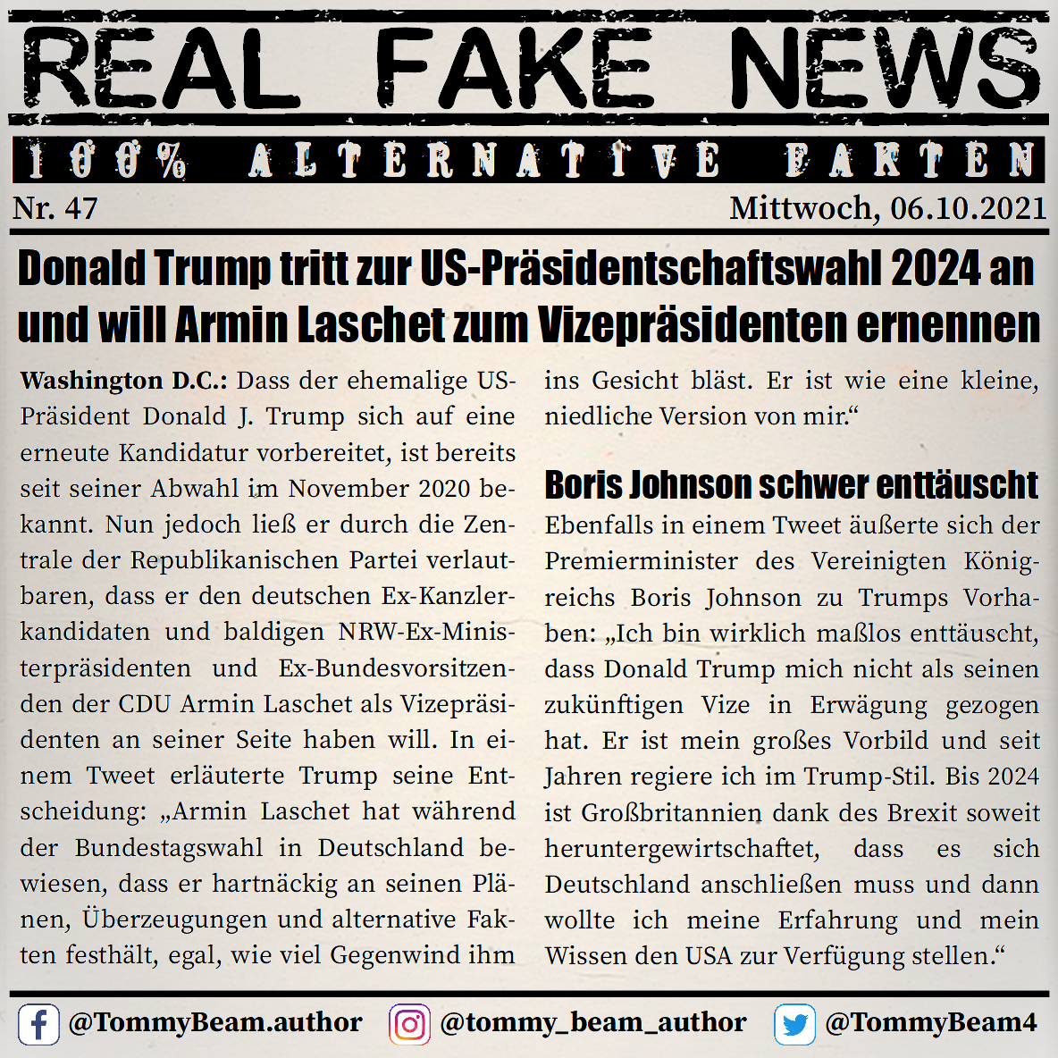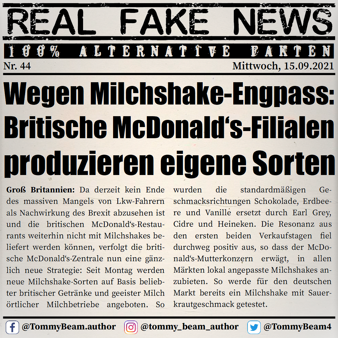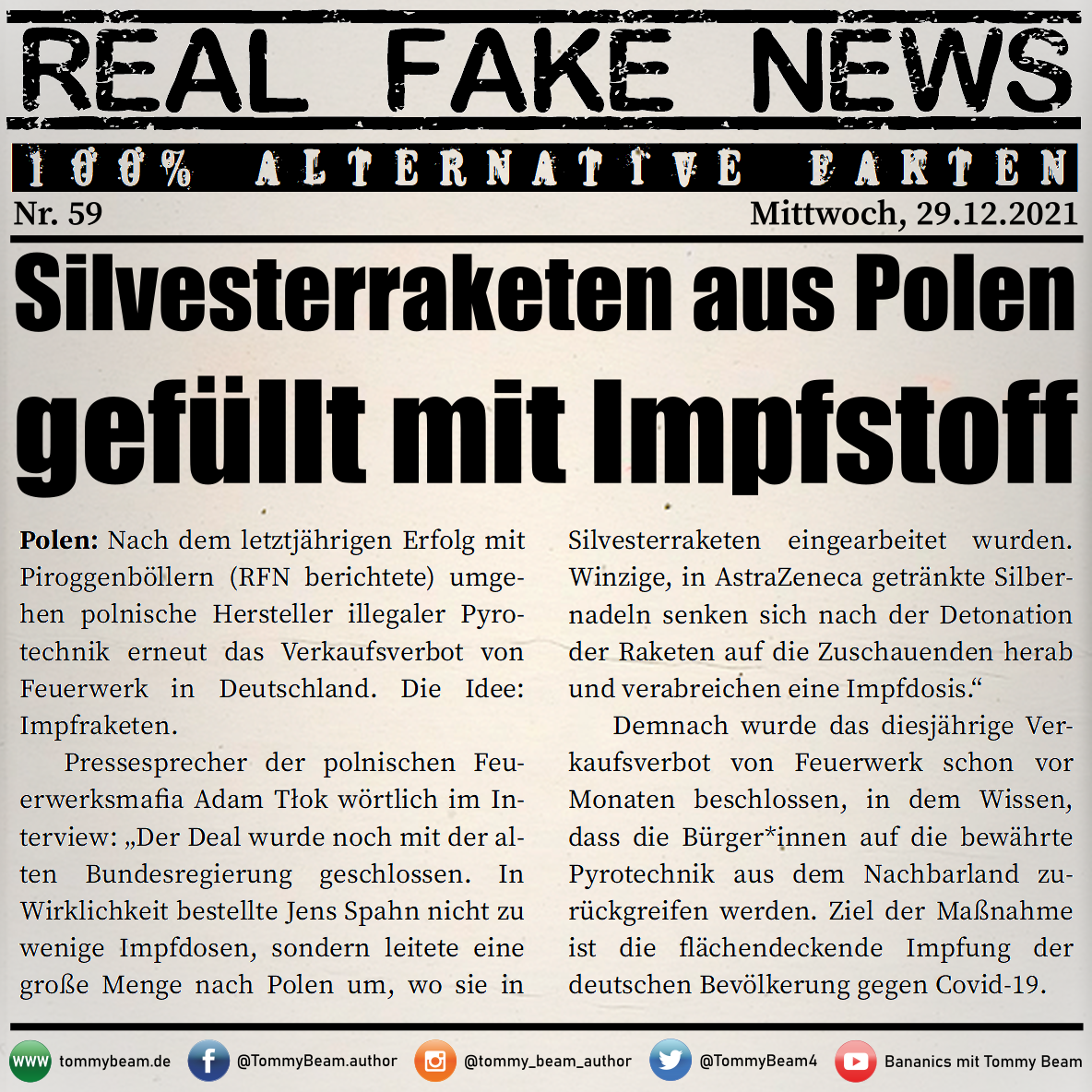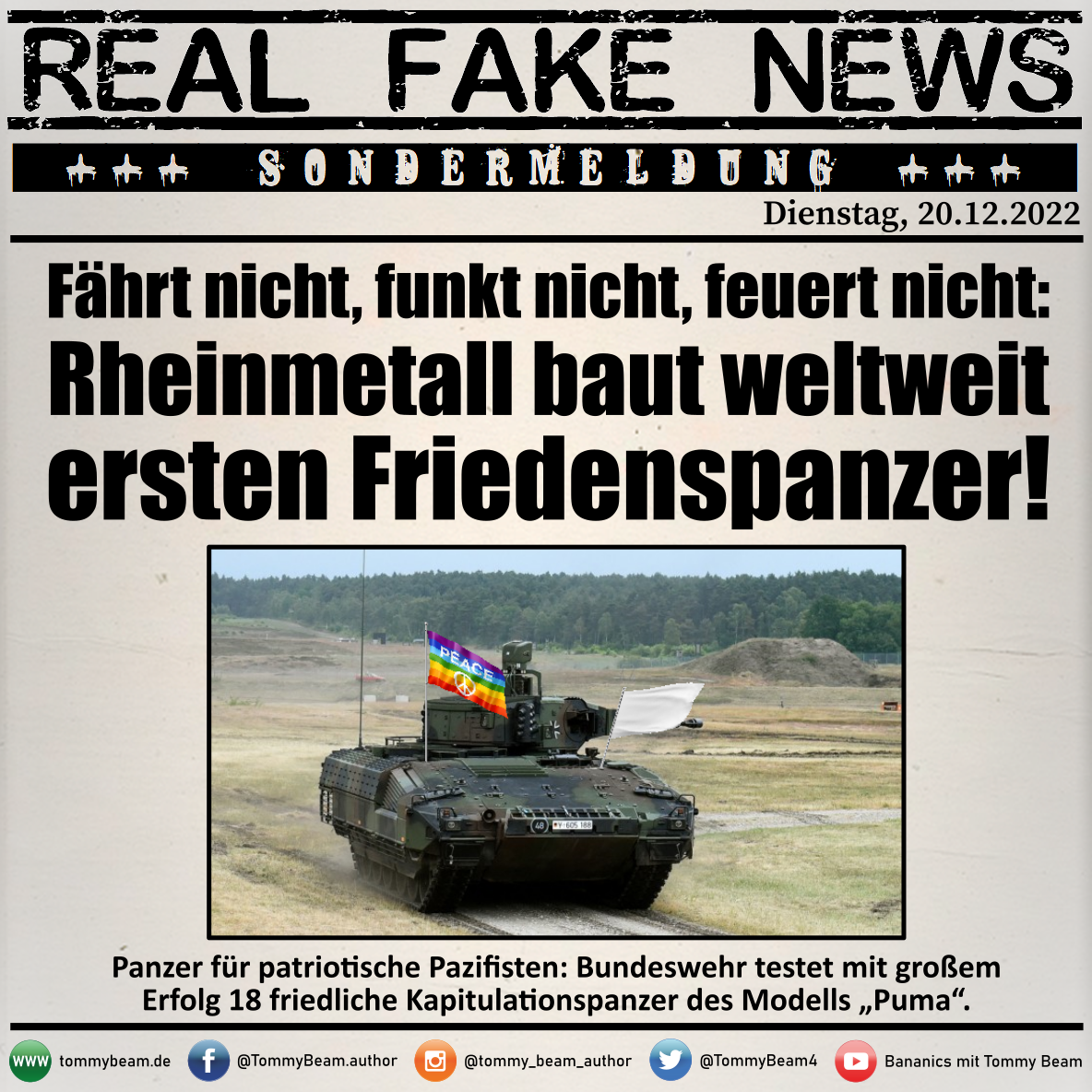 Bei der Rubrik ,,Real Fake News“ handelt es sich um Satire. Die geschilderten Behauptungen müssen nicht der Wahrheit entsprechen und spiegeln nicht die Meinung des Autoren wieder.