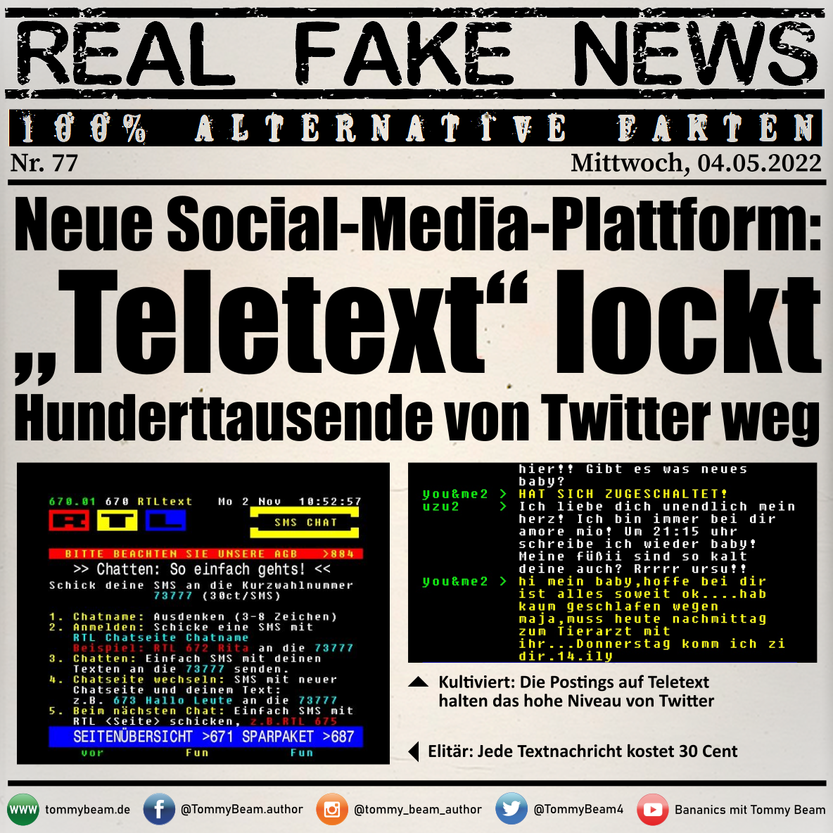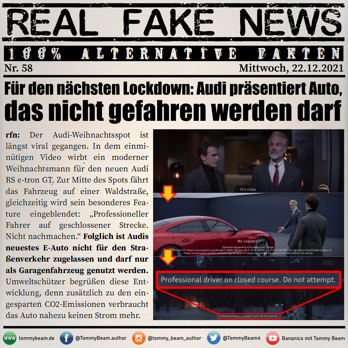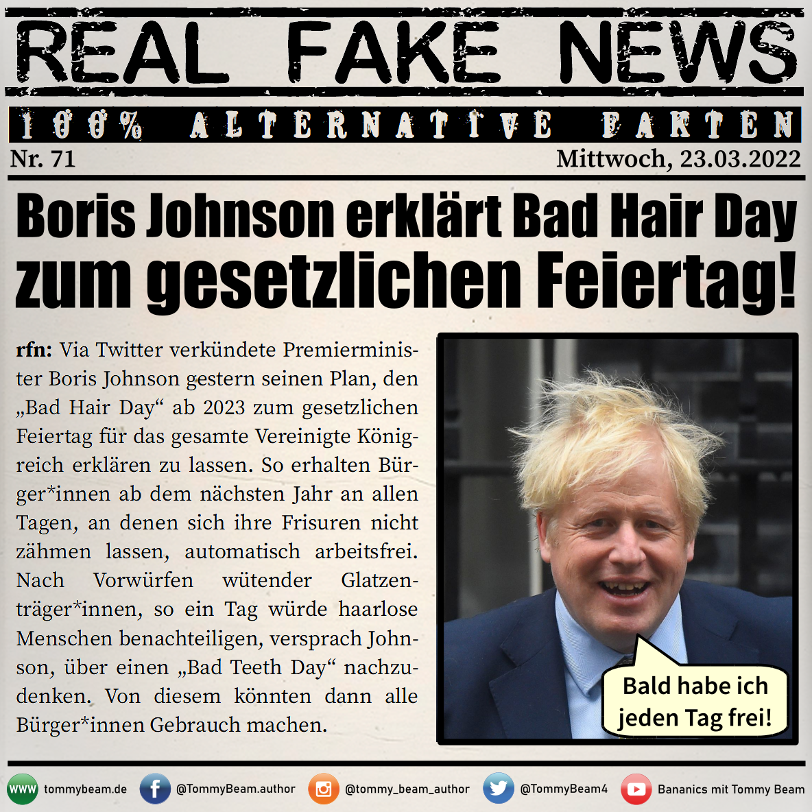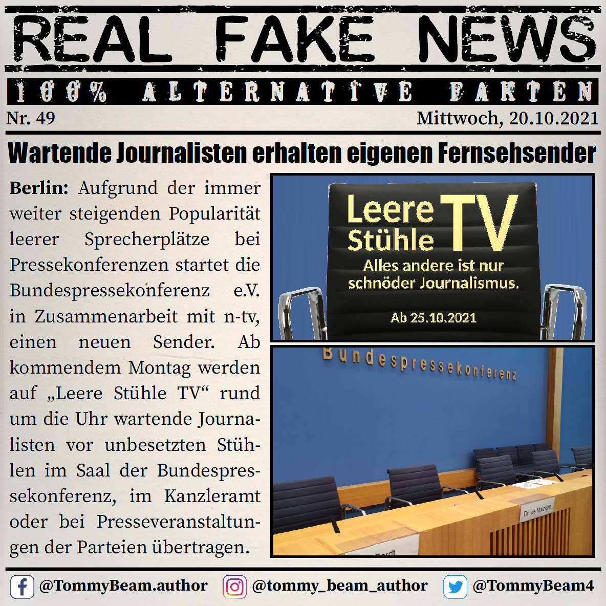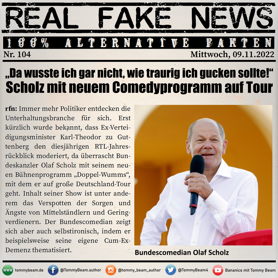Bei der Rubrik ,,Real Fake News“ handelt es sich um Satire. Die geschilderten Behauptungen müssen nicht der Wahrheit entsprechen und spiegeln nicht die Meinung des Autoren wieder.